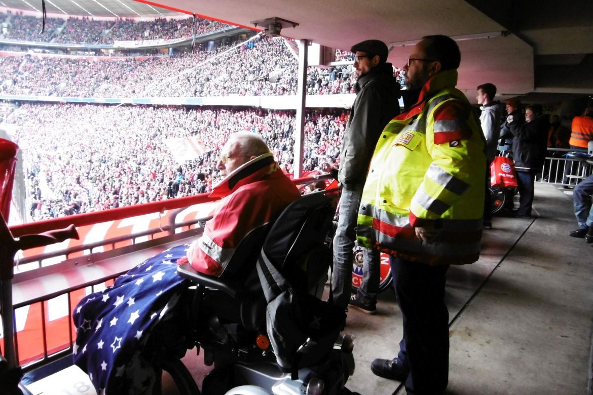 Diese Wunschfahrt ging in die Allianz Arena, denn unser 65-jähriger Fahrgast wollte noch einmal zu einem Spiel seines Lieblingsvereins FC Bayern München. Im Stadion angekommen, halfen uns die Ordner und Sicherheitskräfte mit vereinten Kräften, um unseren Fahrgast mit seinem elektrischen Rollstuhl zu den reservierten Plätzen zu bringen.
